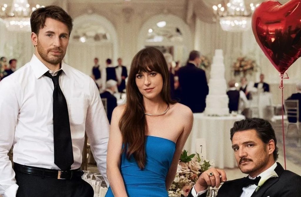 AMORES MATERIALISTAS (Materialists – EUA 2025). Direção: Celine Song. Elenco: Dakota Johnson, Chris Evans, Pedro Pascal, Zoe Winters, Marin Ireland, Emmy Wheeler, Louisa Jacobson, Eddie Cahill e Sawyer Spielberg. Duração: 116 minutos. Distribuição: Sony.
