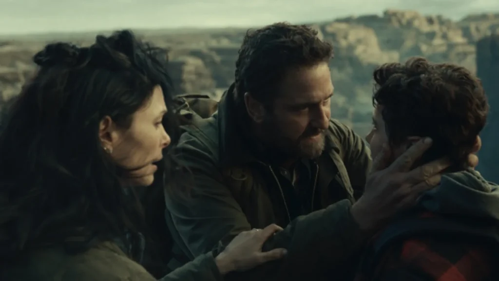 O problema de dar um título genérico e definitivo costuma ser bastante perigoso quando o filme em questão ganha uma continuação. É o caso deste Destruição Final 2. No original ele se chama Greenland, em bom português, Groenlândia. O que tem relação direta com a história que nos foi contada em 2020. Agora, cinco anos depois, encontramos novamente a família Garrity: John (Gerard Butler), Allison (Morena Baccarin) e o filho Nathan (Roman Griffin Davis). Após o ocorrido no primeiro filme vemos os três em uma situação delicada em que precisam chegar a uma cratera gigante na França, onde poderão retomar uma vida próxima do normal. Dirigido novamente por Ric Roman Waugh, a partir de um roteiro escrito por Chris Sparling e Mitchell LaFortune, temos aqui uma aventura apocalíptica cheia de perigos, e, na mesma medida, repleta de facilitadores narrativos que acabam por eliminar o senso de perigo e urgência que o filme anterior tinha. Este é o maior pecado que histórias assim podem ter. E Destruição Final 2 segue à risca a cartilha desses erros sem esforço algum.