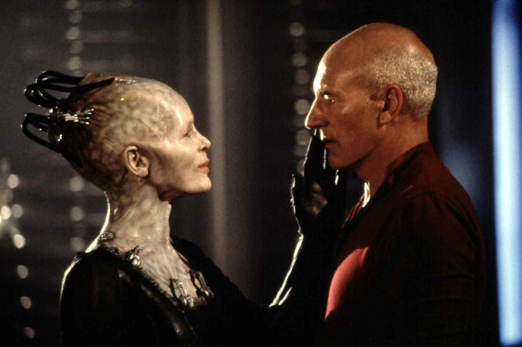 Uma coisa puxa a outra. O sucesso dos longas-metragens de Jornada nas Estrelas fez com o estúdio levasse aquele universo novamente para onde tudo começou: a televisão. Em 1987 foi lançada a série Jornada nas Estrelas: A Nova Geração. Desta vez, tínhamos uma nave estelar com o mesmo nome, Enterprise, porém, com uma nova tripulação em aventuras que aconteciam cerca de um século após a série clássica. Foram 178 episódios espalhados por sete temporadas, onde acompanhamos o capitão Jean-Luc Picard (Patrick Stewart), Data (Brent Spiner), William Riker (Jonathan Frakes), Deanna Troi (Marina Sirtis), Geordi La Forge (LeVar Burton), Beverly Crusher (Gates McFadden) e tenente Worf (Michael Dorn). Em 1994, ano em que a série terminou, a Paramount produz o primeiro longa com o novo elenco: Jornada nas Estrelas: Generations, dirigido por David Carson. Aqui, houve uma mistura entre a nova e a velha geração. O resultado ficou bem aquém do esperado e mais uma vez, se recorreu à mesma fórmula utilizada no segundo e no quarto filme da franquia. Ou seja, pega carona em uma aventura do seriado e viaja no tempo. Por conta disso, o oitavo longa (olha os pares aí de novo), tem como vilões os Borgs. Em especial os eventos apresentados nas duas partes do episódio The Best of Both Worlds, em que Picard é capturado por eles. E a Enterprise volta ao ano de 2063, ano em que os terráqueos tiveram seu primeiro encontro com uma raça alienígena. Com roteiro escrito por Brannon Braga e Ronald D. Moore, Jornada nas Estrelas: Primeiro Contato, dirigido em 1996 pelo ator Jonathan Frakes é seguramente o melhor com o elenco da Nova Geração e um dos melhores da franquia.
