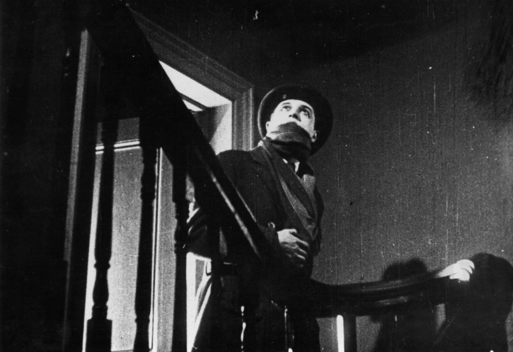 Apesar de ter iniciado sua carreira em 1922 e dirigido quatro trabalhos até 1926, o cineasta britânico Alfred Hitchcock sempre considerou O Inquilino, de 1927, seu filme de estreia. Também conhecido como O Pensionista ou O Inquilino Sinistro, temos aqui um drama de suspense com roteiro do próprio Hitchcock ao lado de Eliot Stannard que tem por base a obra literária de Marie Belloc Lowndes. Fortemente influenciado pelo expressionismo alemão, somos apresentados ao assassino em série batizado de “O Vingador”, que ataca e mata jovens mulheres na nebulosa Londres com forte inspiração nos crimes de Jack, o Estripador. Hitchcock estabelece o clima de pavor e medo já nas primeiras cenas através de manchetes de jornal. A tensão generalizada é visível na rotina de todas as personagens. E tudo fica mais tenso ainda quando um novo morador, Jonathan Drew (Ivor Novello), chega à pensão dos Bouting (Marie Ault e Arthur Chesney). Especialmente por conta de seus estranhos hábitos como sair nas noites de névoa e carregar a foto de uma bonita loira. O diretor que em pouco tempo ficaria famoso como “o mestre do suspense” tem em O Inquilino seu primeiro sucesso comercial. A partir daí ele conseguiu mais autonomia para dirigir filmes com um pouco mais de liberdade e com isso passou a testar movimentos e soluções visuais que se tornaram marcas registradas de seu talento narrativo. Se mesmo sendo uma obra com cerca de 100 anos que continua instigante hoje, imagine como deve ter sido quando de seu lançamento. Em tempo: este foi o primeiro trabalho em que Hitchcock fez uma ponta, algo que seria recorrente (e esperado) em todos os seus trabalhos futuros.
