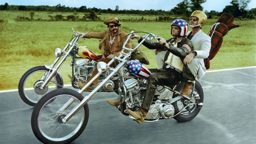 SEM DESTINO (Easy Rider – EUA 1969). Direção: Dennis Hopper. Elenco: Peter Fonda, Dennis Hopper, Jack Nicholson, Phil Spector, Luana Anders, Karen Black e Robert Walker Jr. Duração: 94 minutos. Distribuição: Columbia.